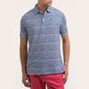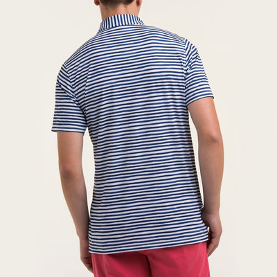 • Blended polyester stretch yarn, watercolor blues print stripe