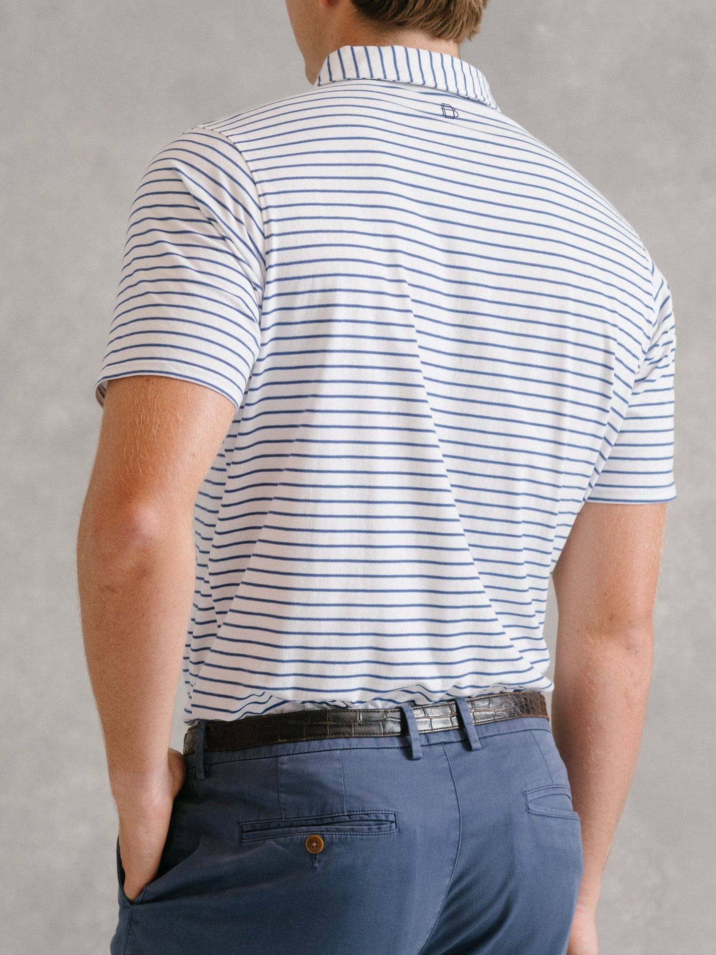 - Short-sleeve, classic vented tail with B. Draddy compass logo at wearer's lower right back hem