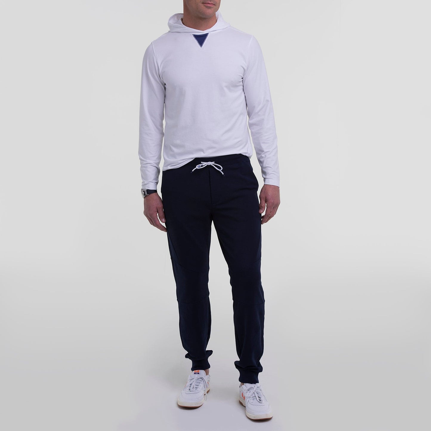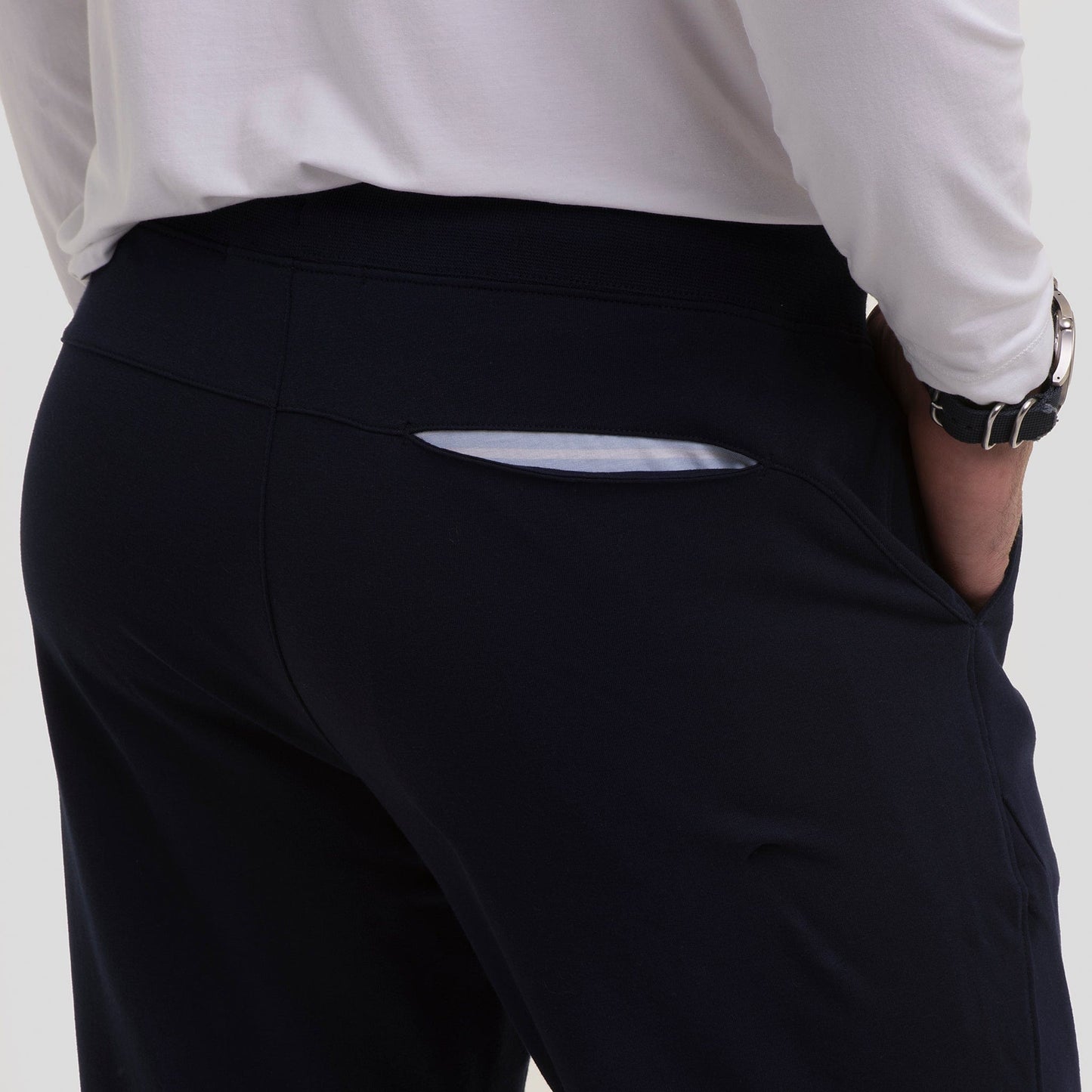We think of the little things—like using special seams that prevent bagging, adding an adjustable drawstring to the elastic waistband, and keeping the ankle cuffs slim for a tailored look.