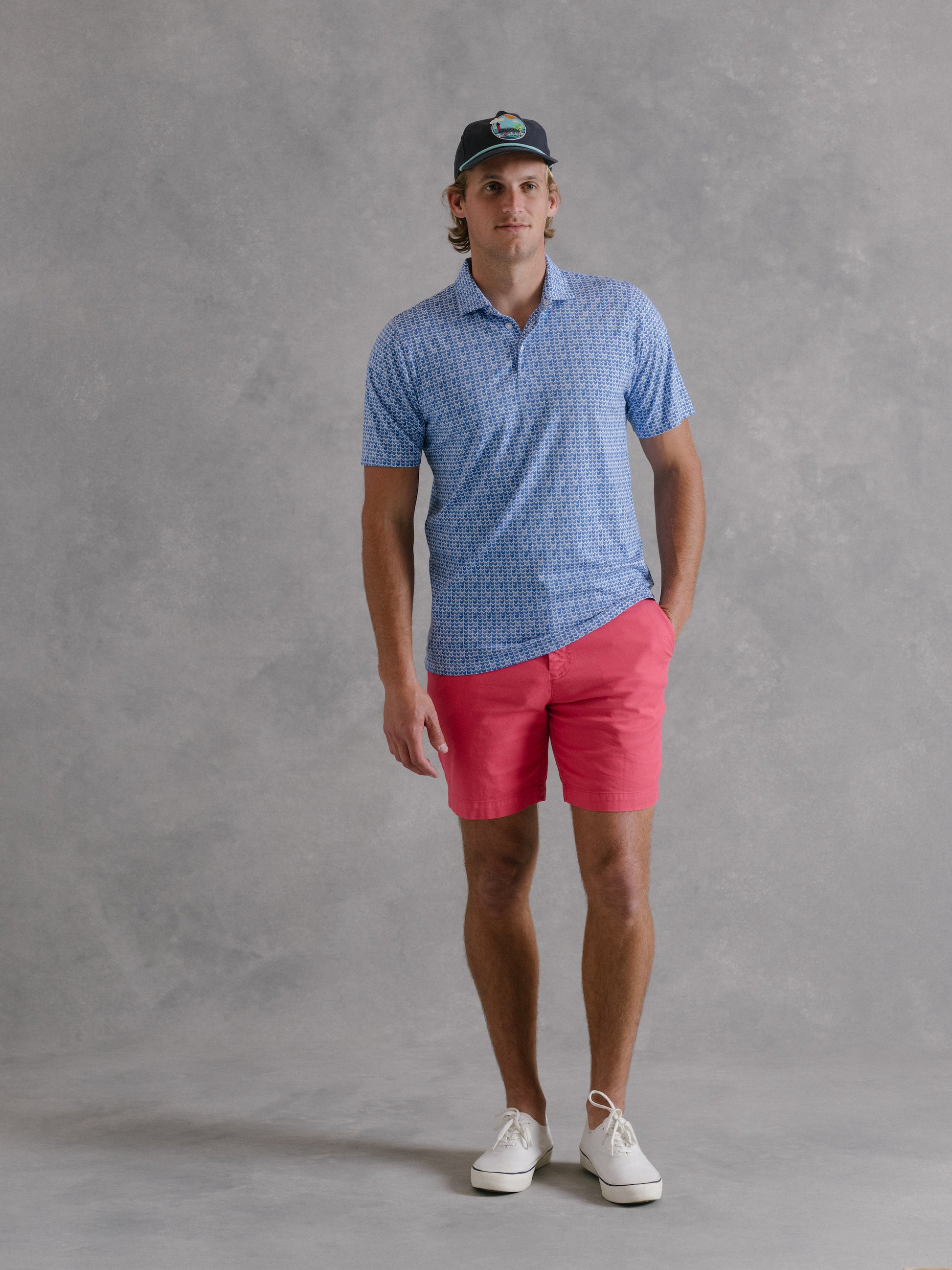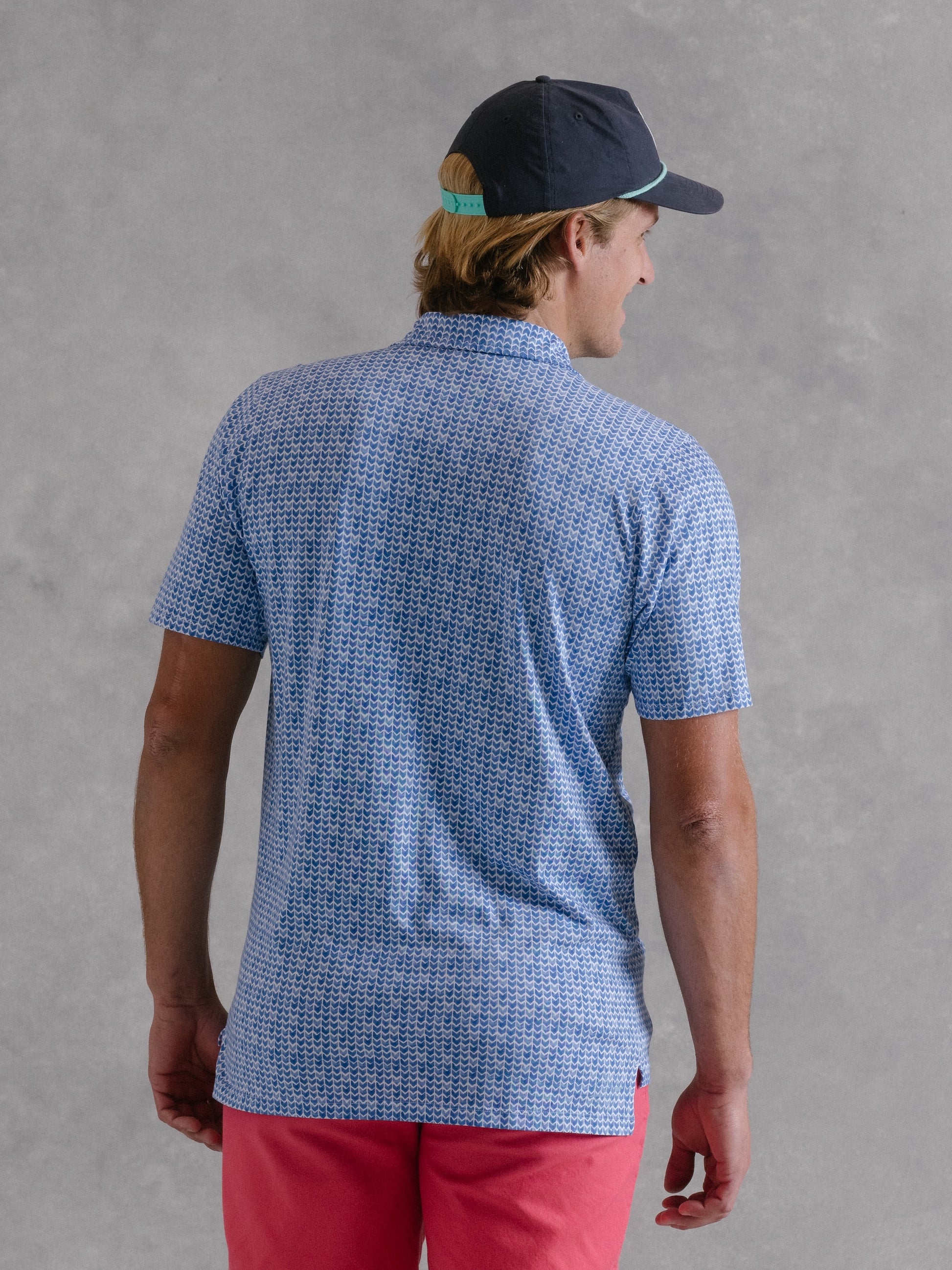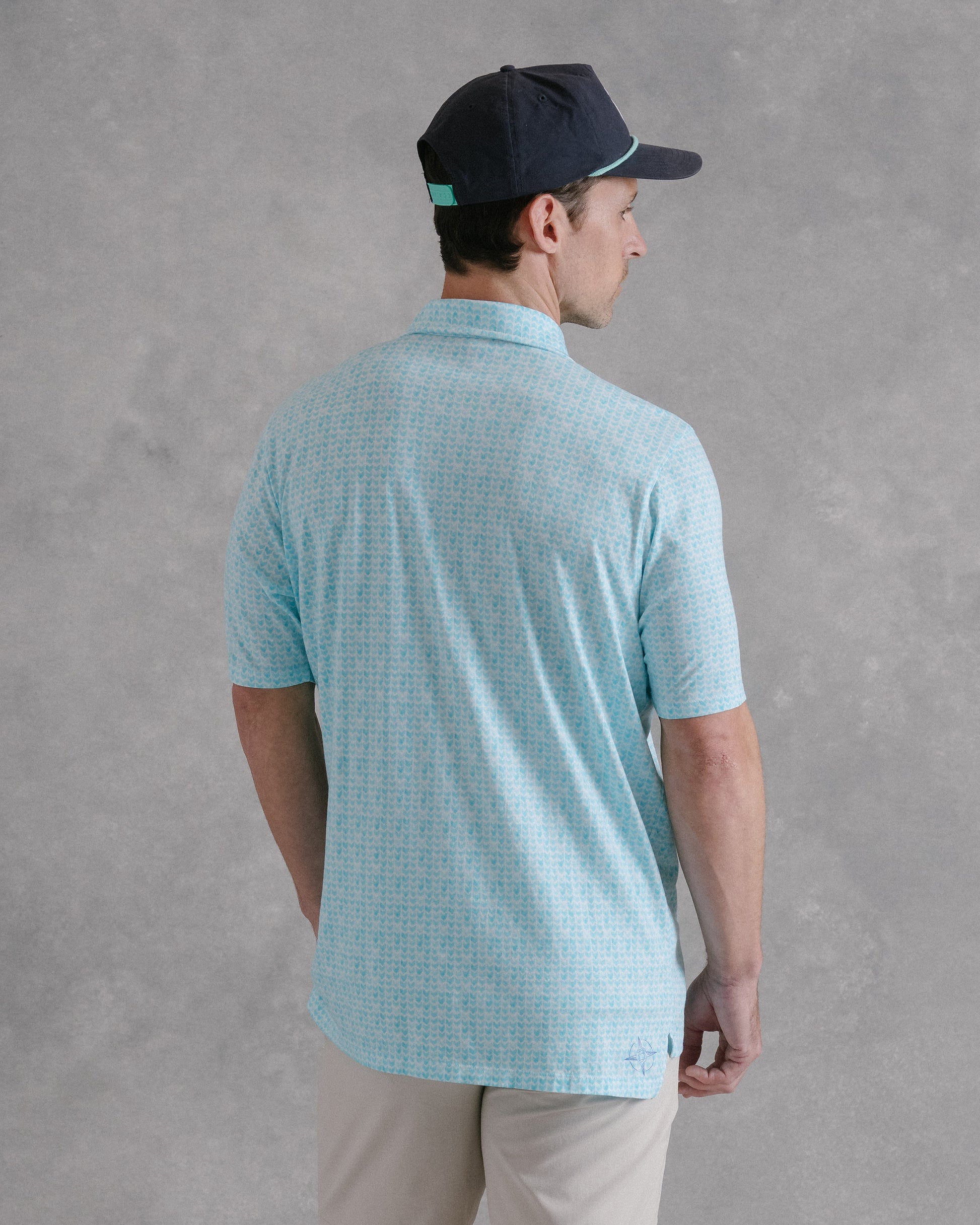 - Short-sleeve, classic vented tail with B. Draddy compass logo at wearer's lower right back hem