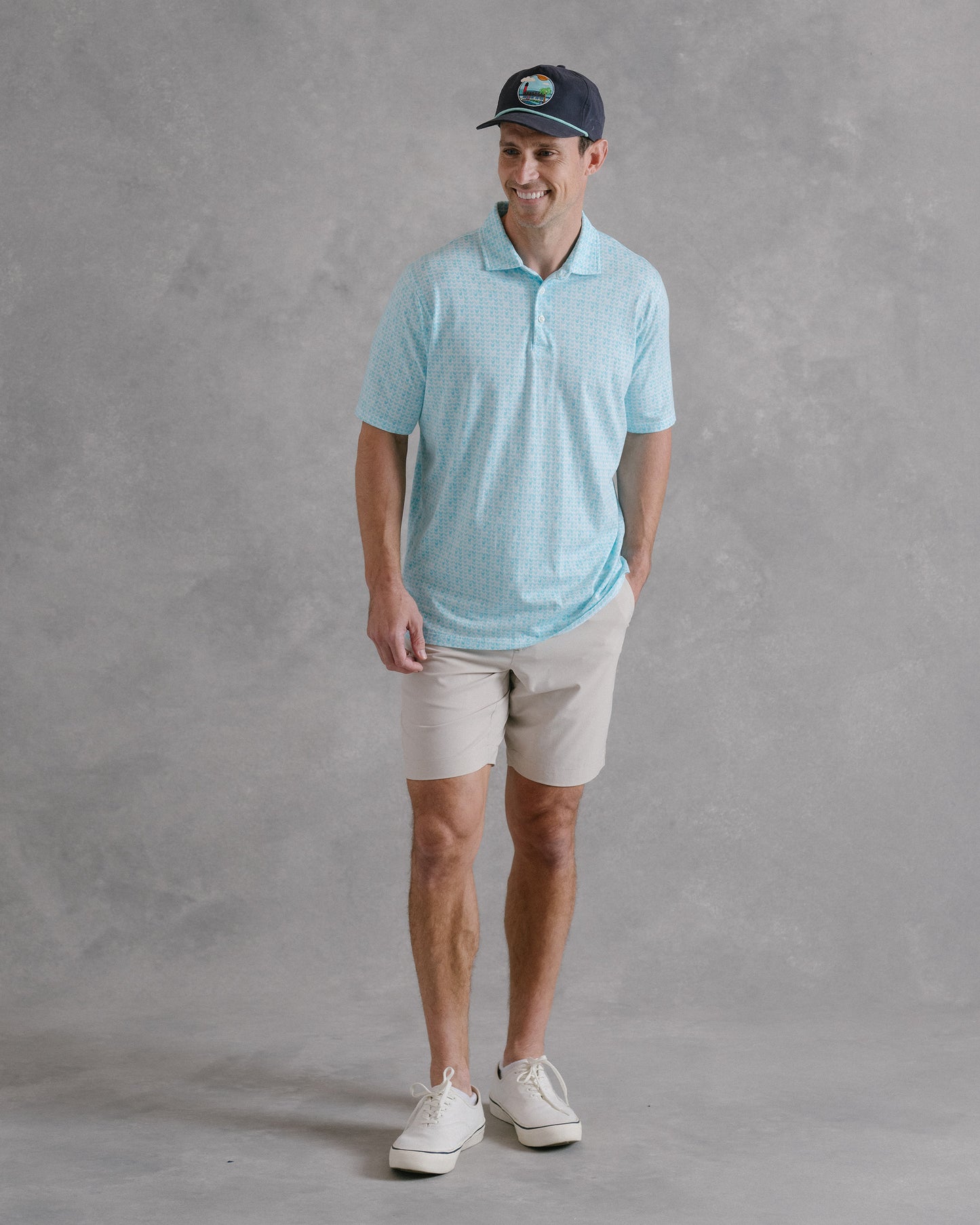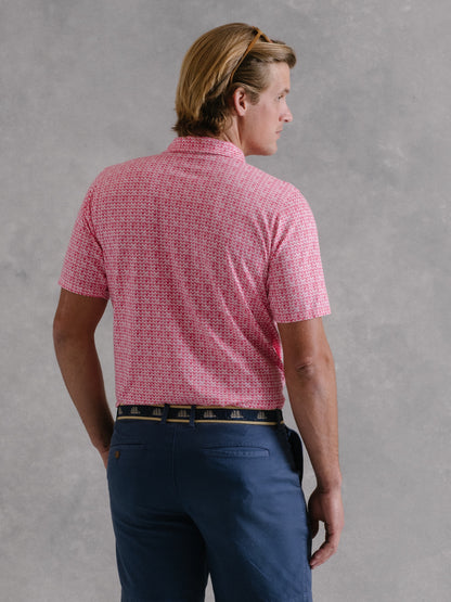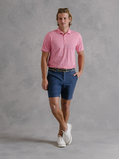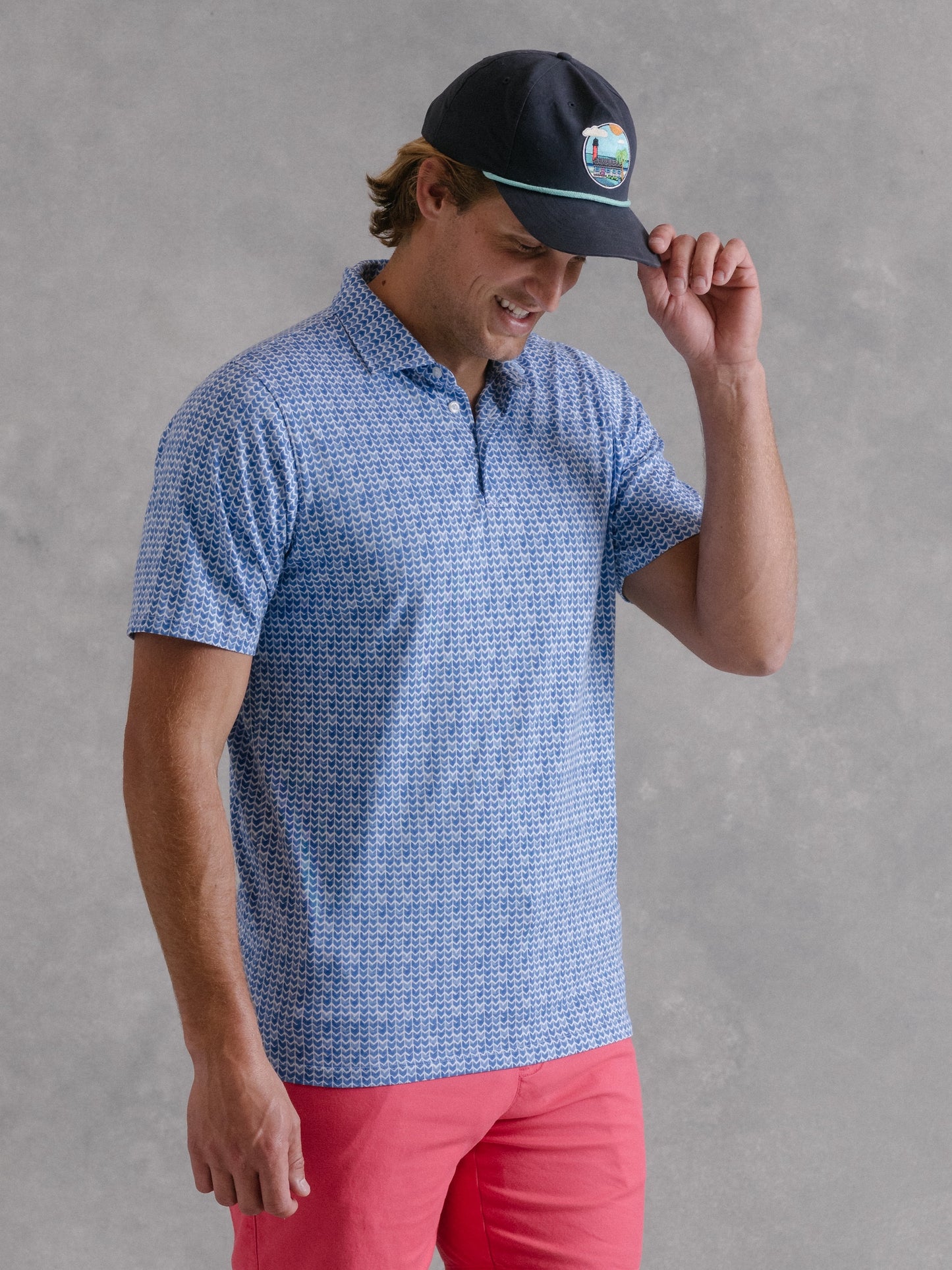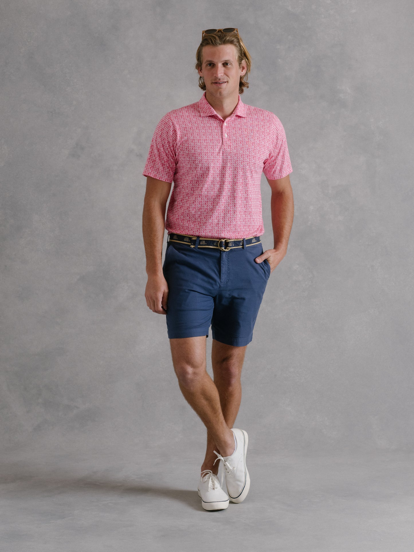 - Short-sleeve, classic vented tail with B. Draddy compass logo at wearer's lower right back hem
