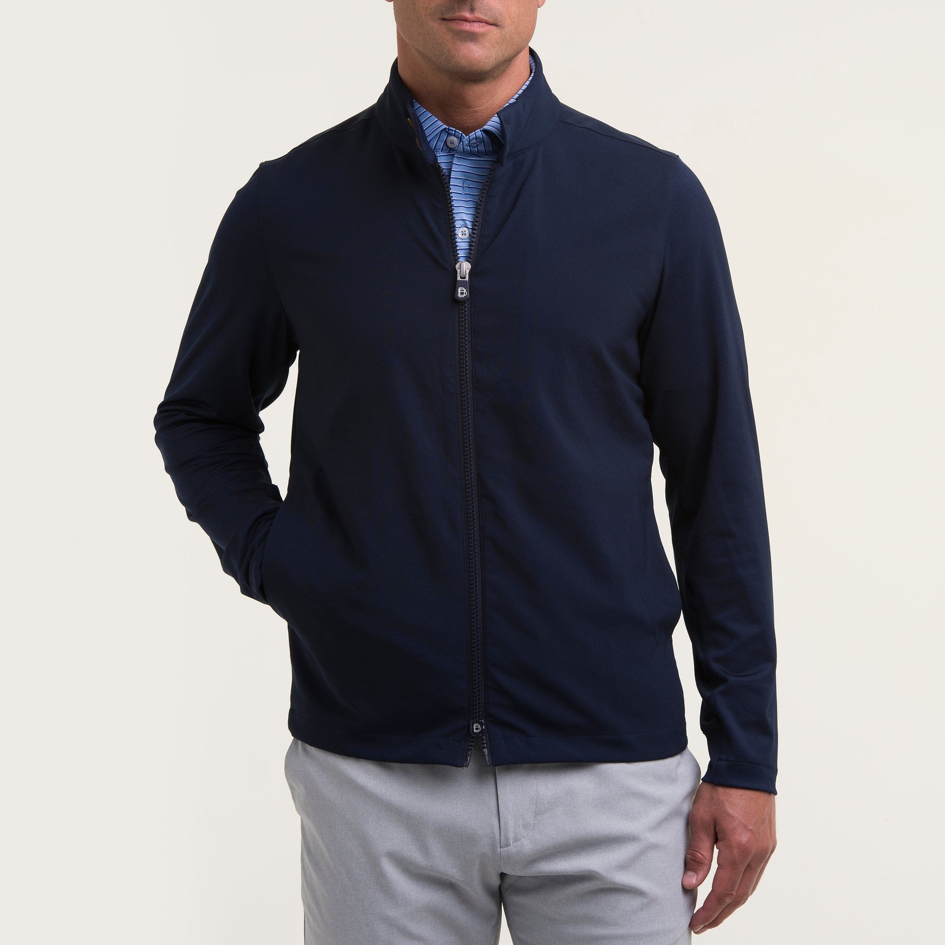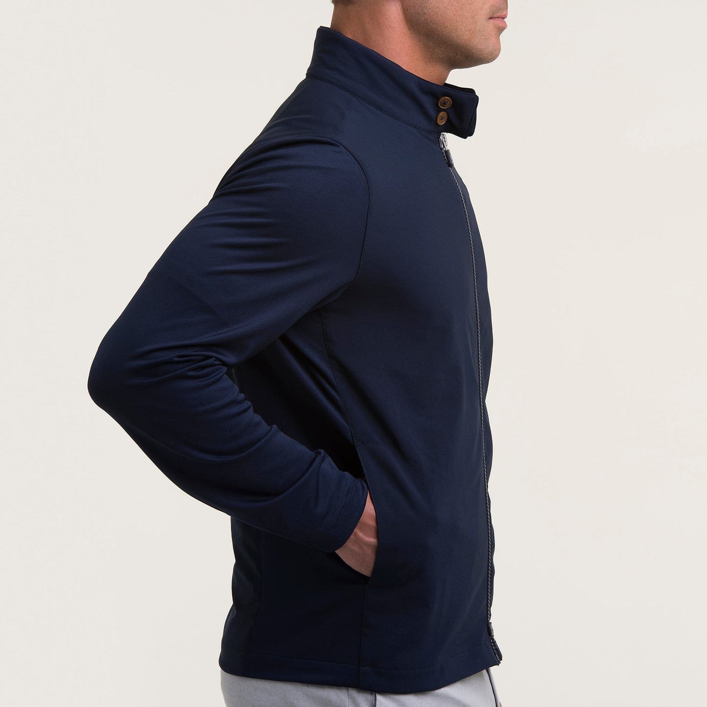 Meet the Harry Jacket—it’ll keep you warm, covered and at the top of your game no matter what weather comes your way. From the course to commute, the hybrid design of lightweight twill and stretch jersey traps warmth without restricting mobility.