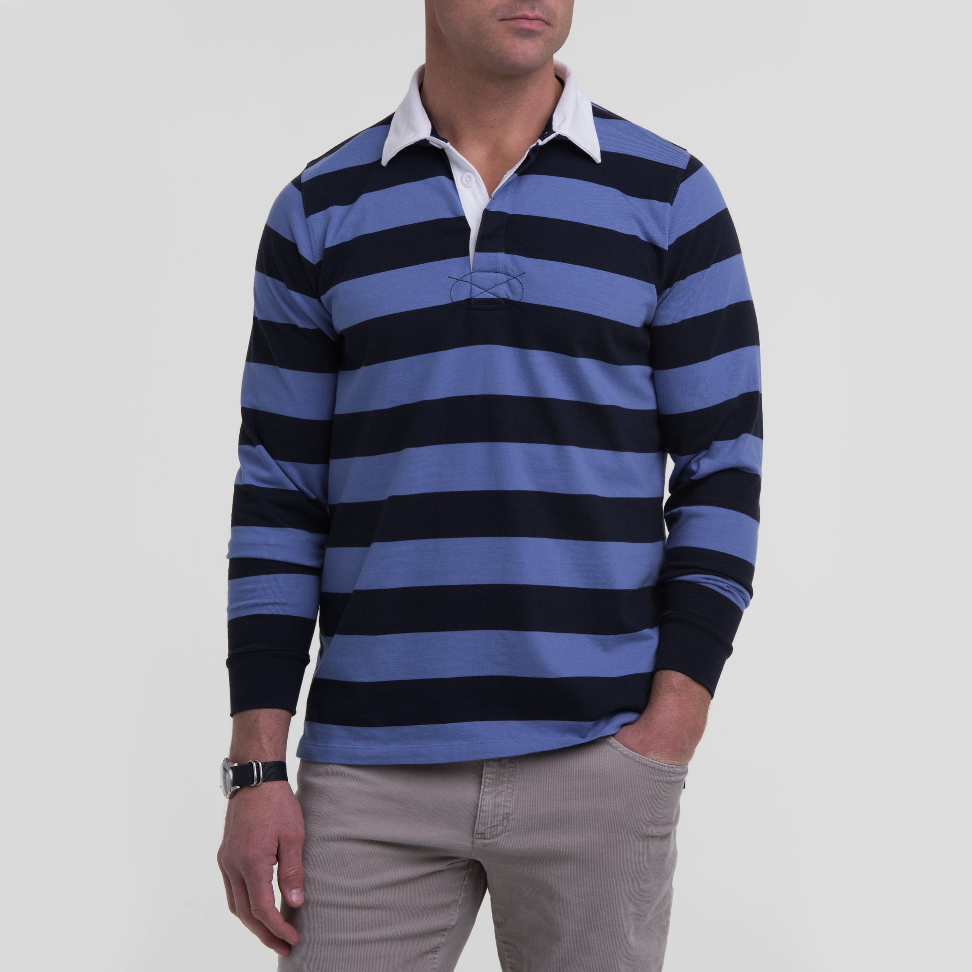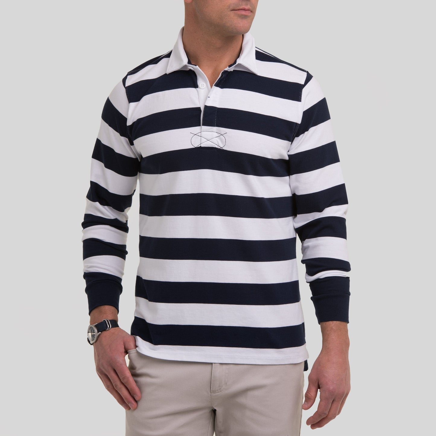 • White Twill Collar, Covered Three Button Placket w/ Classic Rugby Stitch Detail