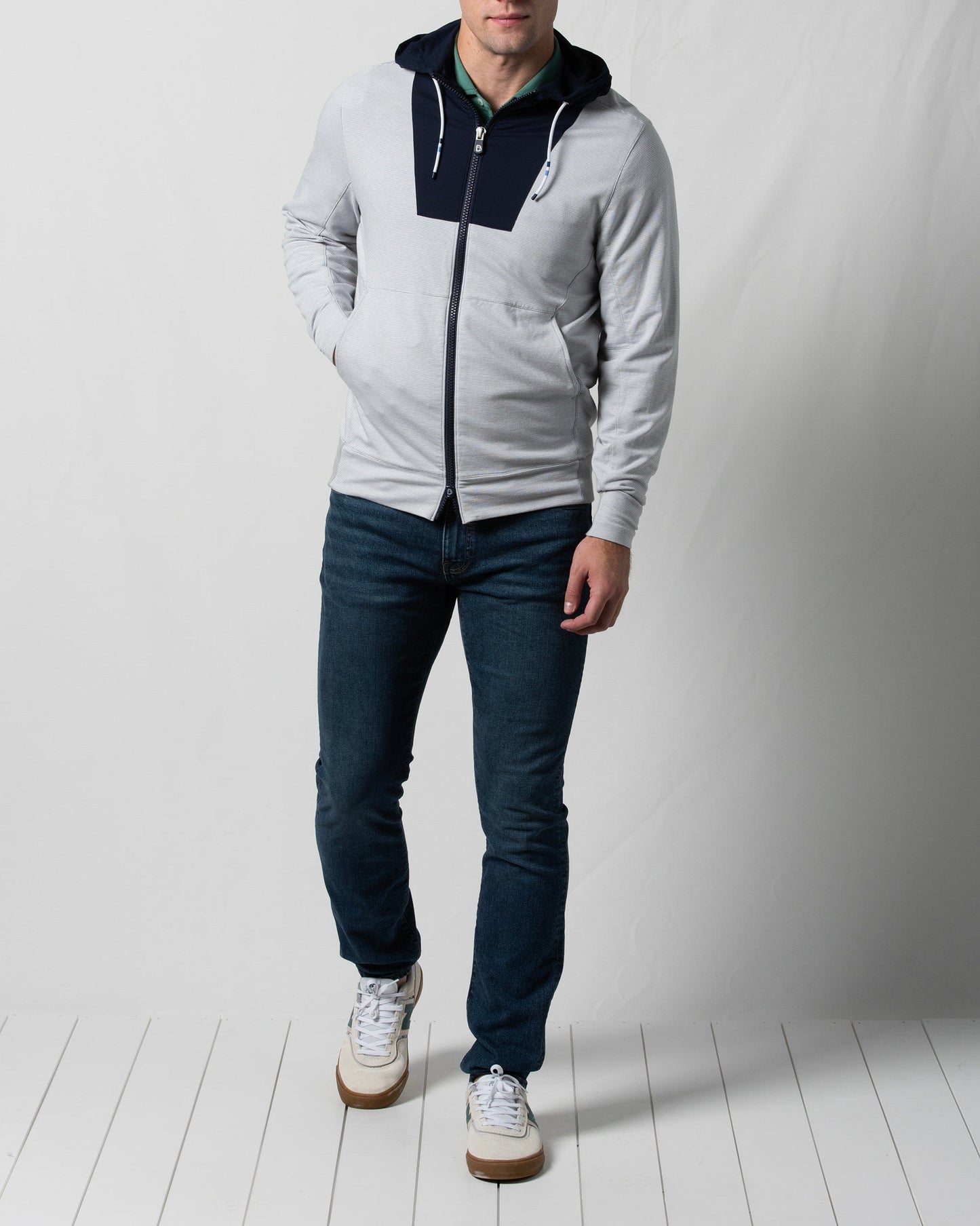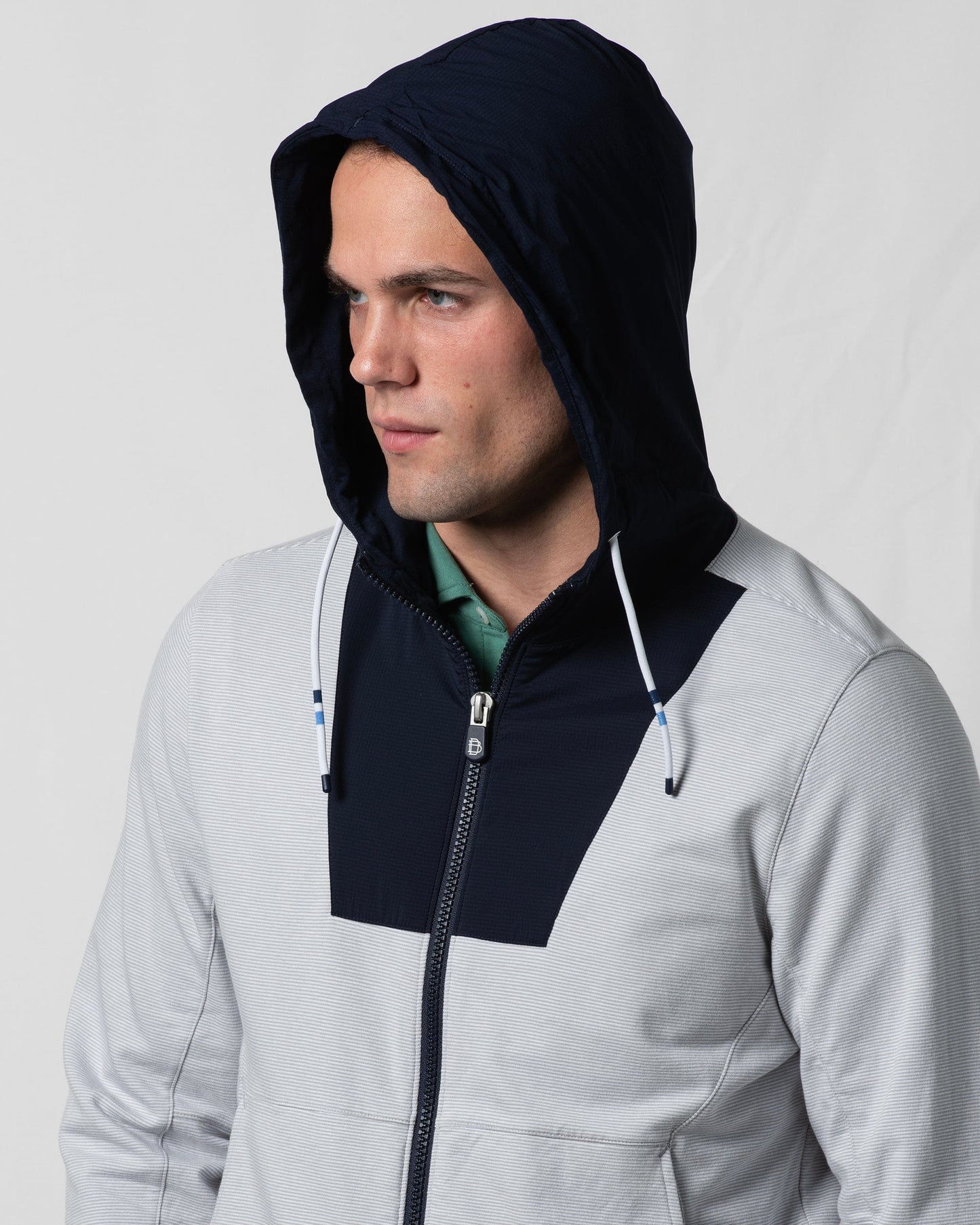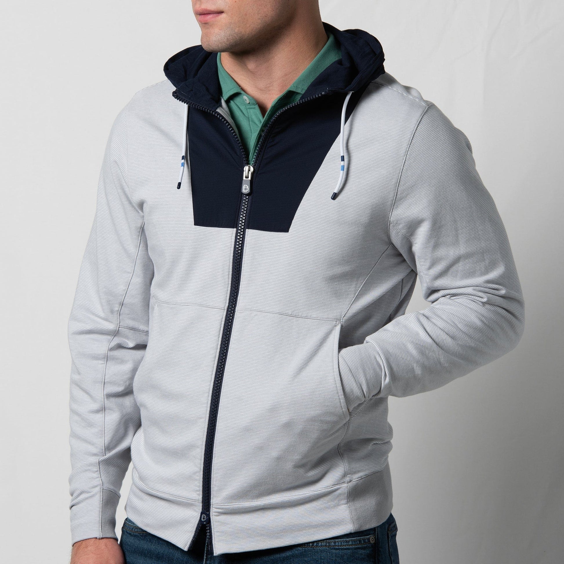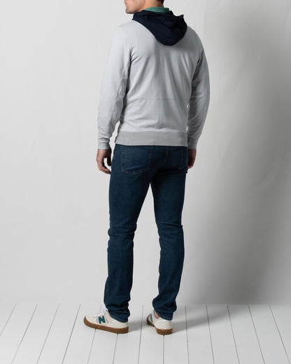 Hoodie with tipped adjustable drawstrings and contrast woven trim at the hood and chest