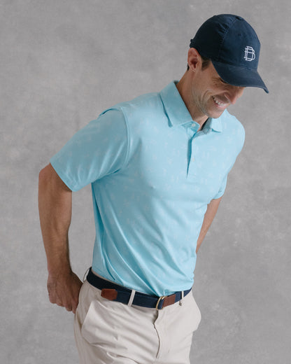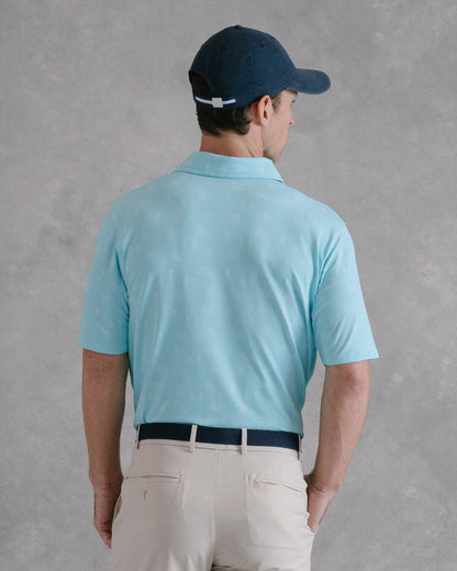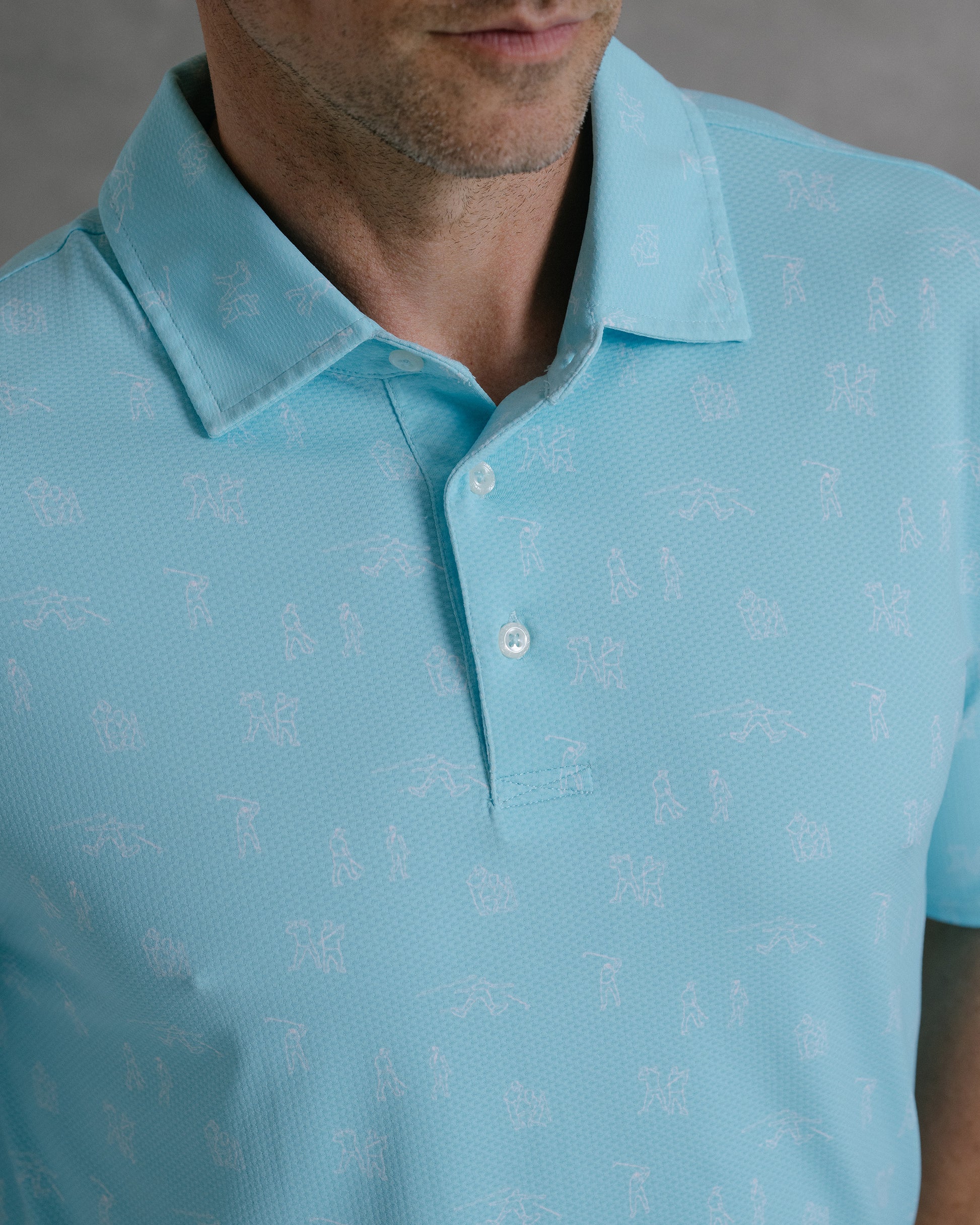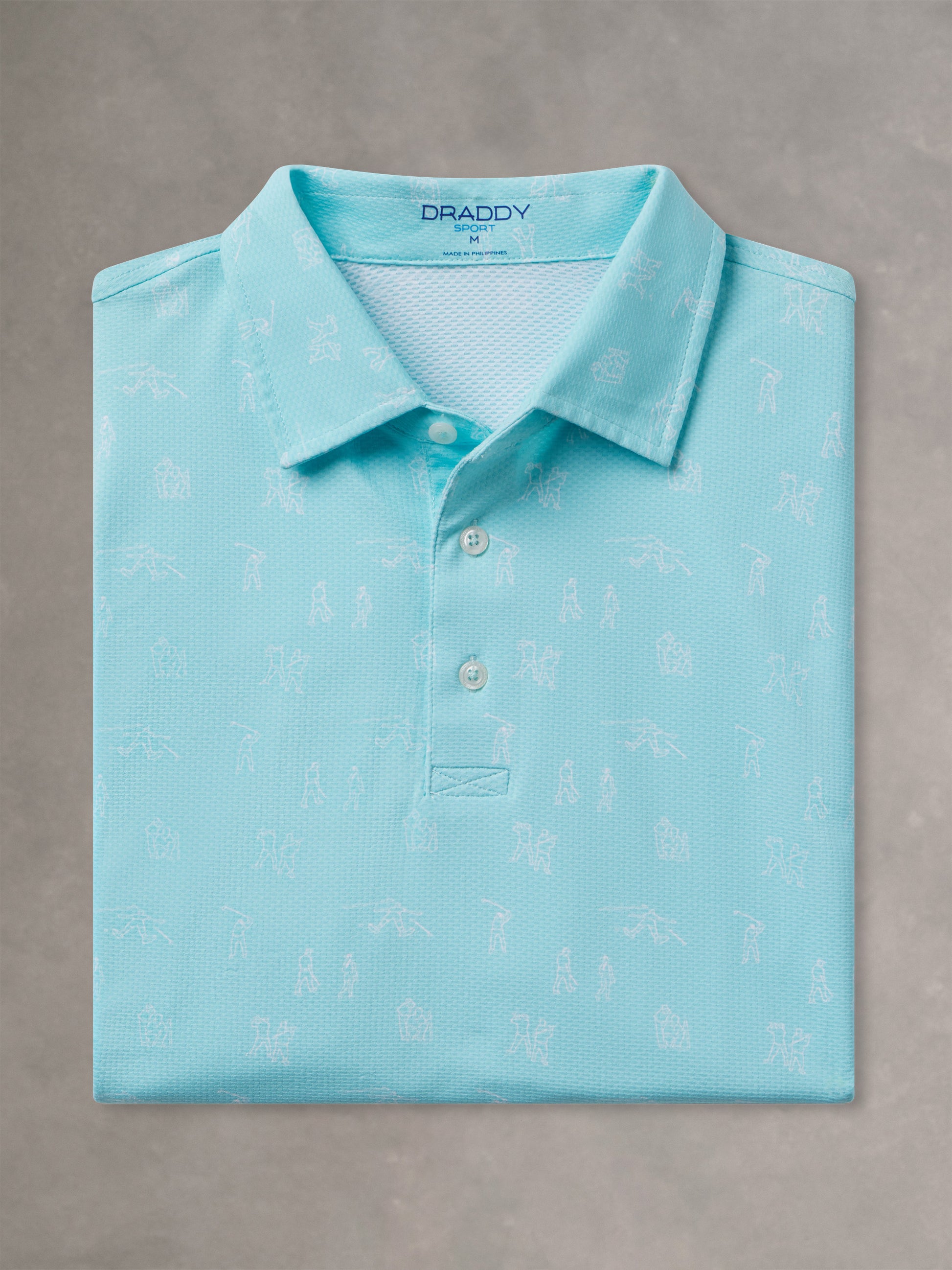 Available in multiple colors across Draddy's soothing, coastal-inspired palette—and complete with an intricate print depicting the highs and lows of golf.