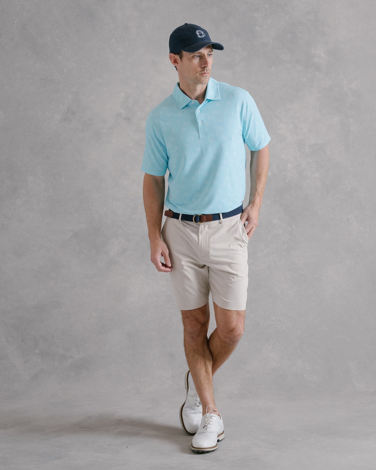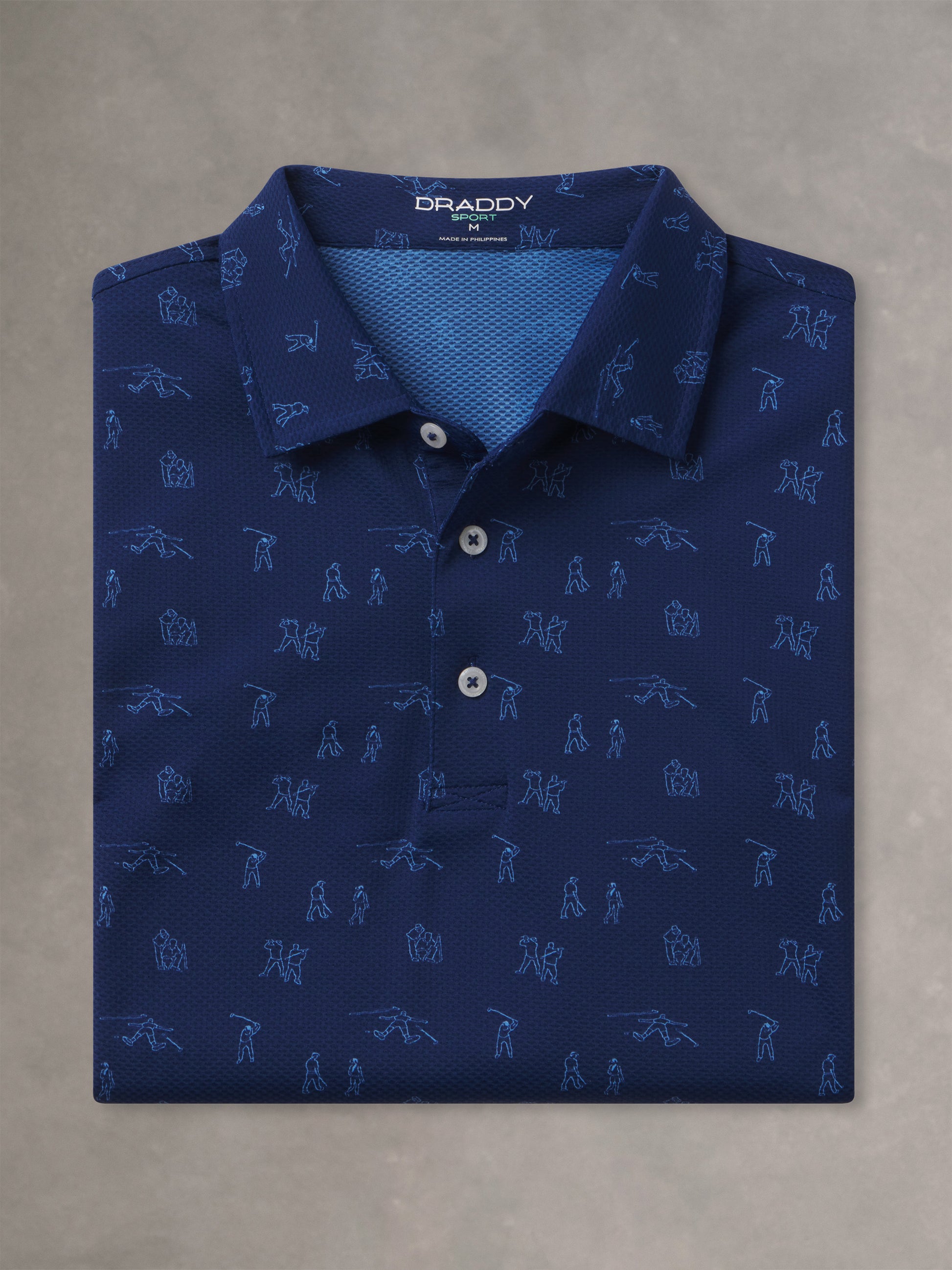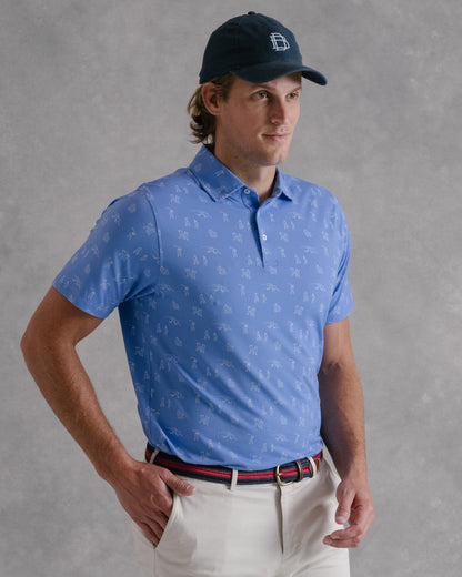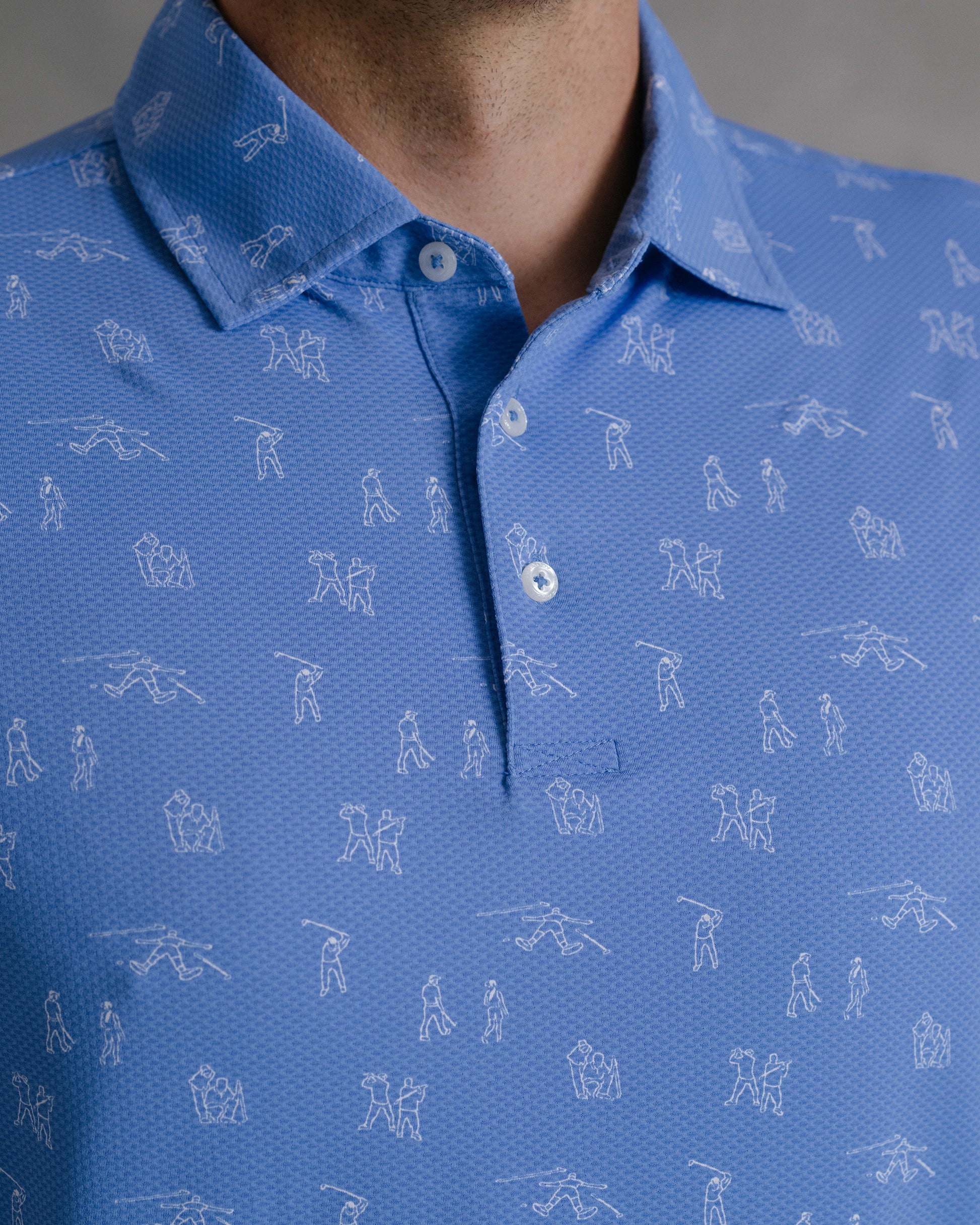 Available in multiple colors across Draddy's soothing, coastal-inspired palette—and complete with an intricate print depicting the highs and lows of golf.