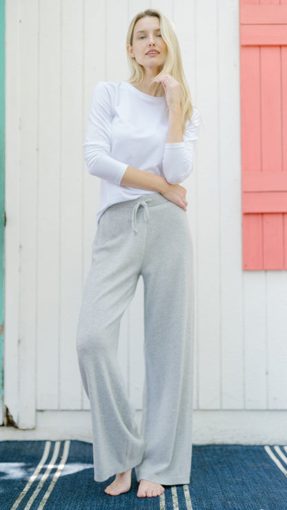 The most elevated lounge pants you’ll ever step into. Crafted with the softest Scottish spun cashmere yarn with a soft heathered finish, these sweater knit pants are pure indulgence. Topped with a comfortable stretch rib waist, pull these on and feel the difference.