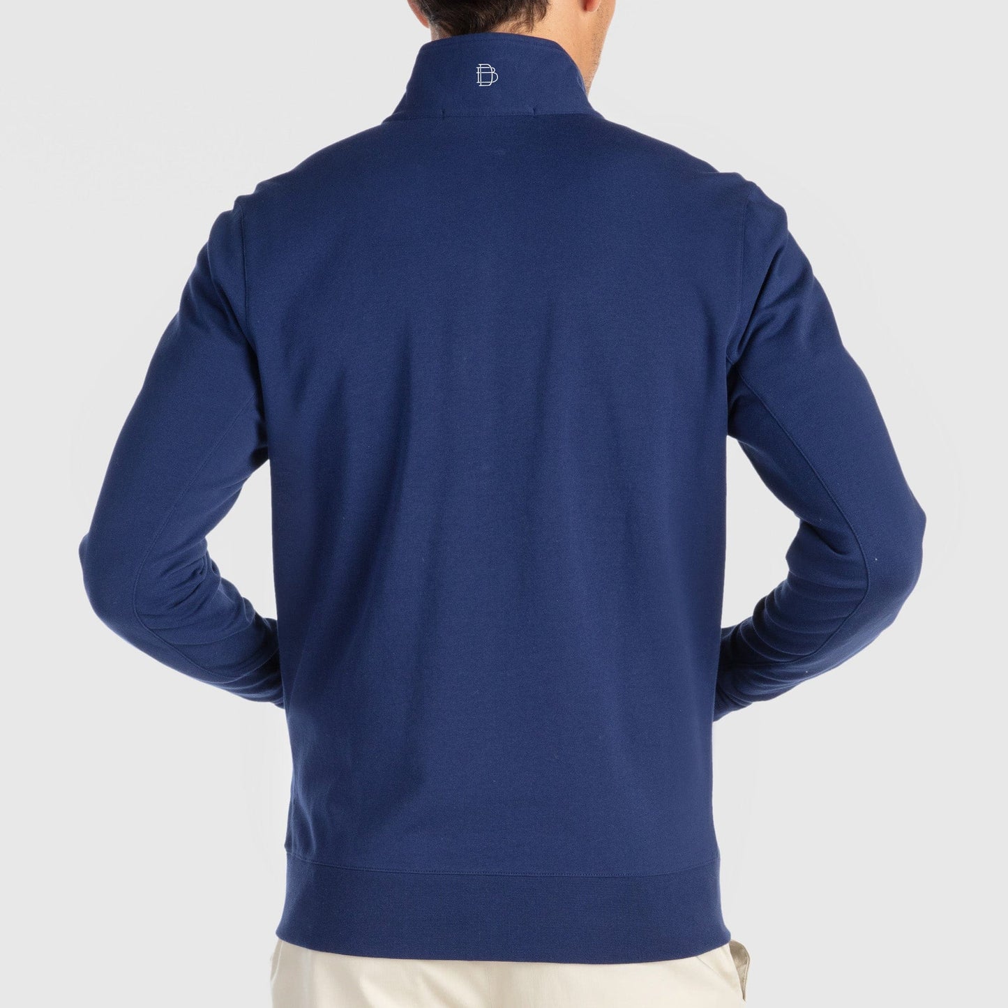 • Quarter-zip neckline with B. Draddy zipper pull and contrast interior