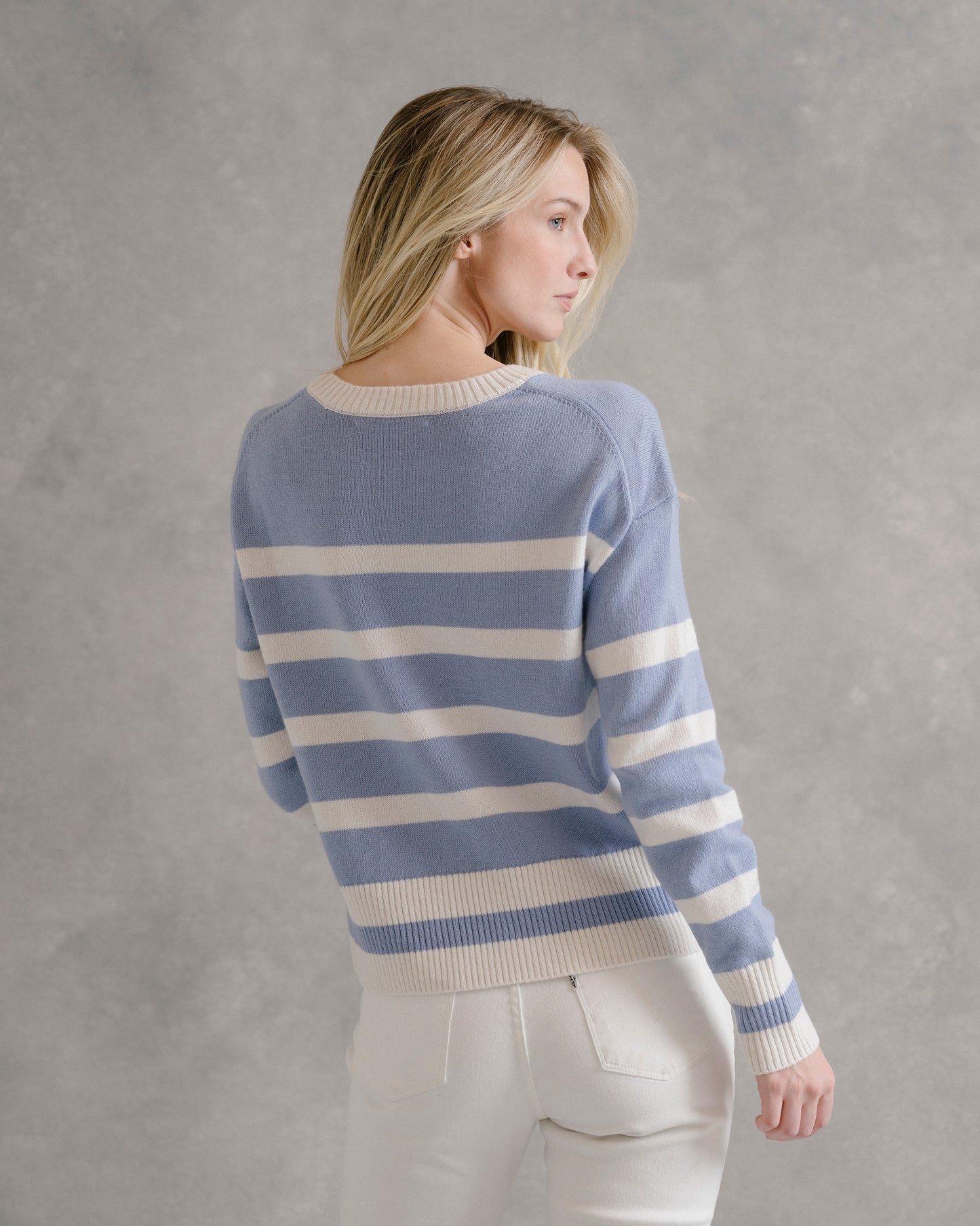 - Fully fashioned drop shoulder and neck