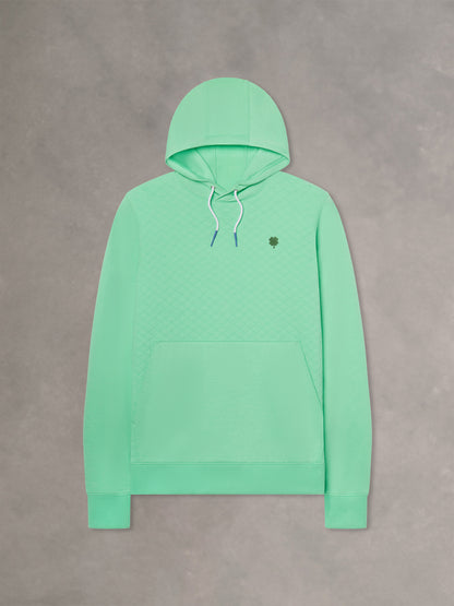 - Drawstring crossover hood with contrast drawcords and neck tape